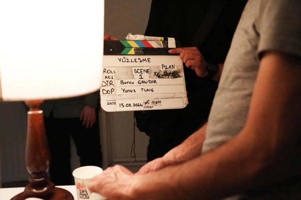 Filmi yazıp yöneten Burcu Çandır ise hazırlık sürecinin istediği şekilde ilerlediğini belirterek “Çekimlere iyi bir şekilde hazırlanmak için yeterli vaktimiz vardı. Hal böyle olunca da çekimlerde bir aksilik yaşamadan günü tamamladık. İstediğimiz şeyleri gerçekleştirebildik. Oyuncuların eğitimli olması, ekibin bir kısmının da akademi öğrencileri olması istediğimiz gibi ilerlememizi sağladı. Herkes elinden gelenin en iyisini yapmak için uğraştı. Ben ne istediğimi biliyordum. Oyuncular da benim ne istediğimi hemen anlayıp bunu kameraya yansıtabildiler. Film temelde bir yüzleşmeyi konu alıyor. Karakterin aslında yaşadığı pişmanlık ama bu durumu reddedişi ve bir noktada kendisiyle yüzleşmeye başlamasını anlatıyor. Filmin çekim süreci bitti, kurgusu kaldı. En nihayetinde hepsi tamamlandığı zaman bir festival sürecine girmek istiyorum. Ne olur ne olmaz bilinmez ama filmin hikâyesine, filme çok inanıyorum ve ‘Yüzleşme’nin başka insanlarla da buluşmasını istiyorum” diye konuştu.