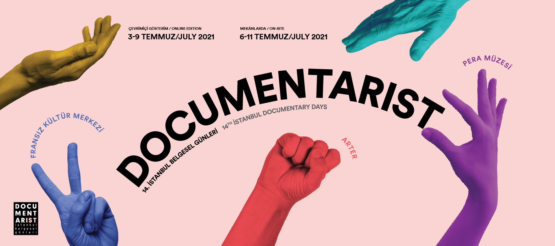 Documentarist 14. İstanbul Belgesel Günleri’nde film gösterimleri Pera Müzesi, Fransız Kültür Merkezi ve Arter’de yapılacak. Hollanda Kraliyeti, İsveç Başkonsolosluğu, İsviçre Başkonsolsoluğu, Goethe Enstitüsü, Portekiz Elçiliği ve Fransız Kültür Merkezi’nin desteği, Pera Müzesi, Arter, Aynalı Geçit, Avam Kahvesi, Bova ve Zeytuna’nın işbirliği gerçekleşen festivalin dijital yayın sponsorluğunu Sahneport.com üstleniyor.